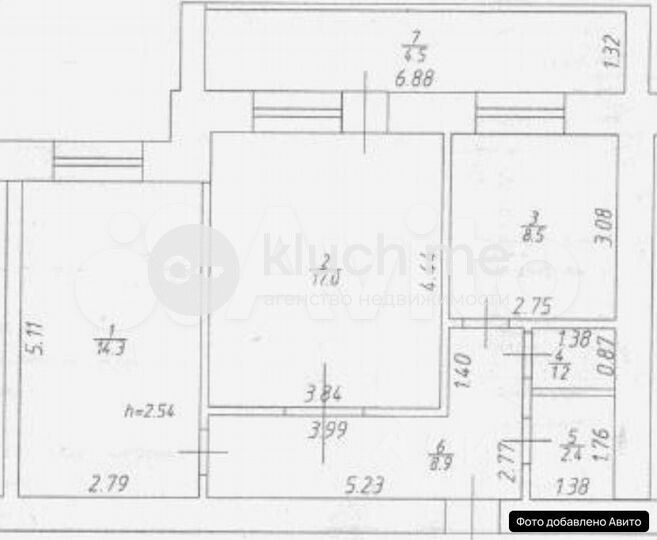Высота потолков — 2,65 метра. Комнаты изолированные.