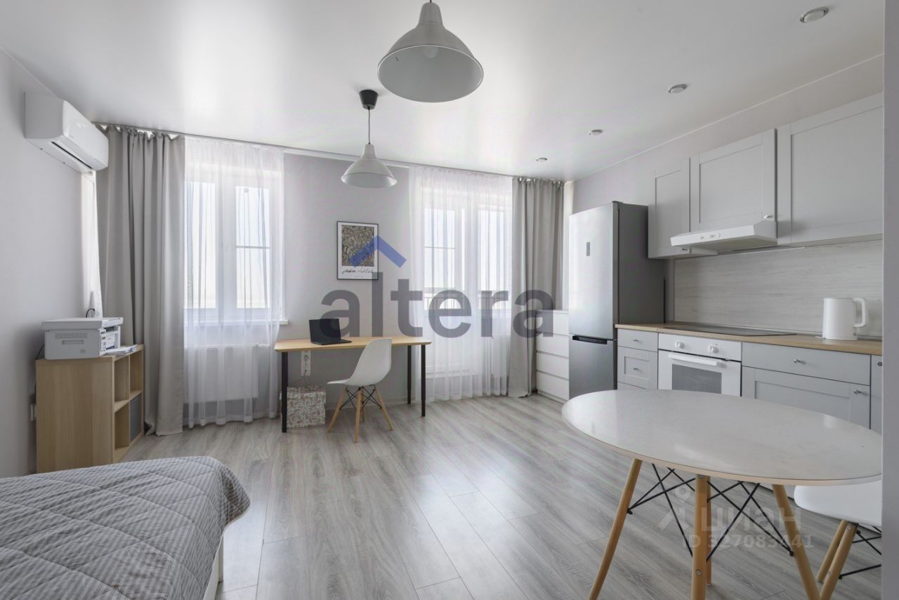 В студии выполнен свежий ремонт в спокойных тонах: вам не придётся тратить время и средства на отделку - можно сразу заезжать и жить. Вся необходимая мебель и техника остаются новым. Из квартиры есть выход на лоджию - представьте, как приятно проводить здесь вечера с чашкой чая, любуясь окрестностями, или встречать рассвет в тишине и спокойствии. Благодаря большой площади и двум окнам в студии всегда светло и уютно - пространство наполнено естественным светом в течение всего дня.