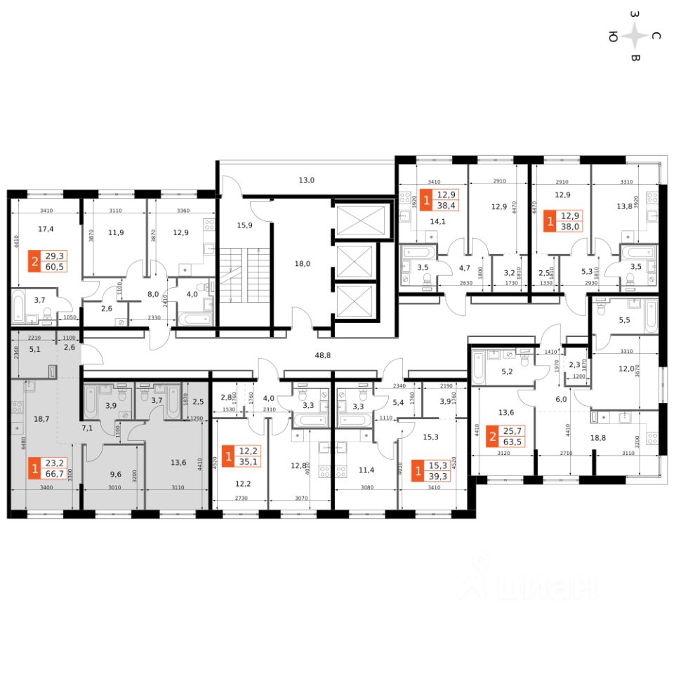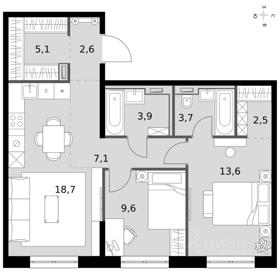 Продаётся 3-к квартира номер 282 общей площадью 66.8 кв.м. на 18-м этаже 19 этажного здания. Предчистовая отделка. Цена с учётом скидки.