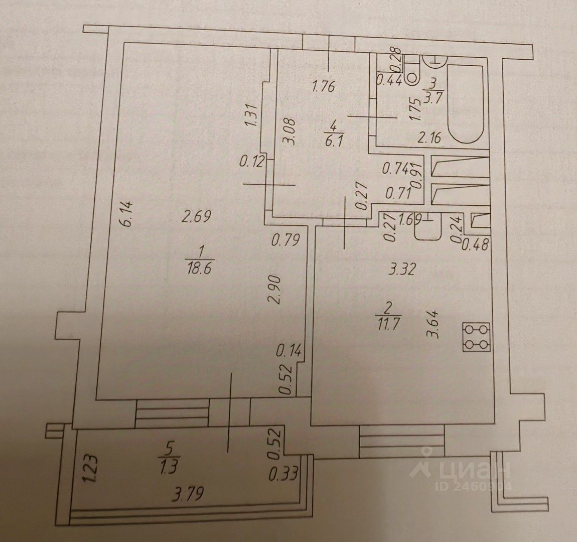 18,6 м²