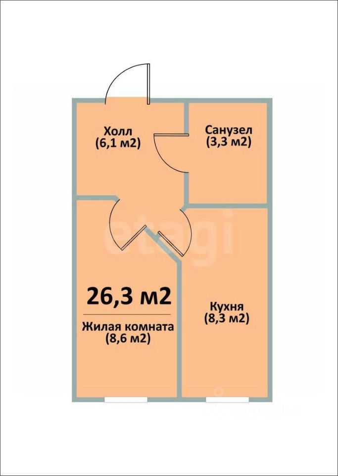 Площадь: Общая 26.3 кв.м.