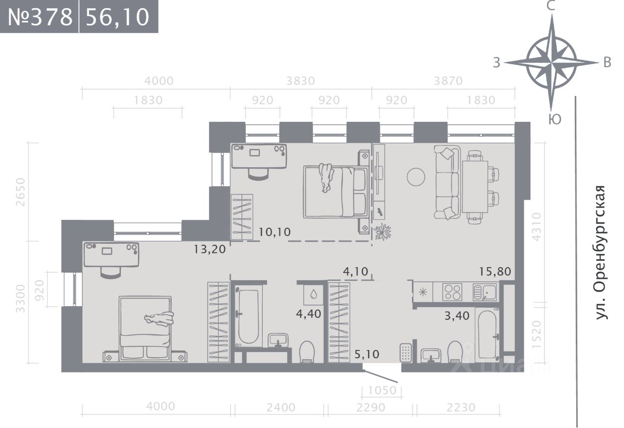 Продаётся 2-комнатная квартира в строящемся доме (Корпус 2 (2 этап)), срок сдачи: IV-кв. 2028, общей площадью 56.1 кв.м., на 2 этаже. Новый жилой комплекс "Оригана" от застройщика "КамаСтройИнвест" расположен по адресу: Россия, Республика Татарстан, Казань, улица Оренбургский Тракт