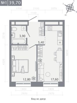 1-комн. квартира, 39,7 м²