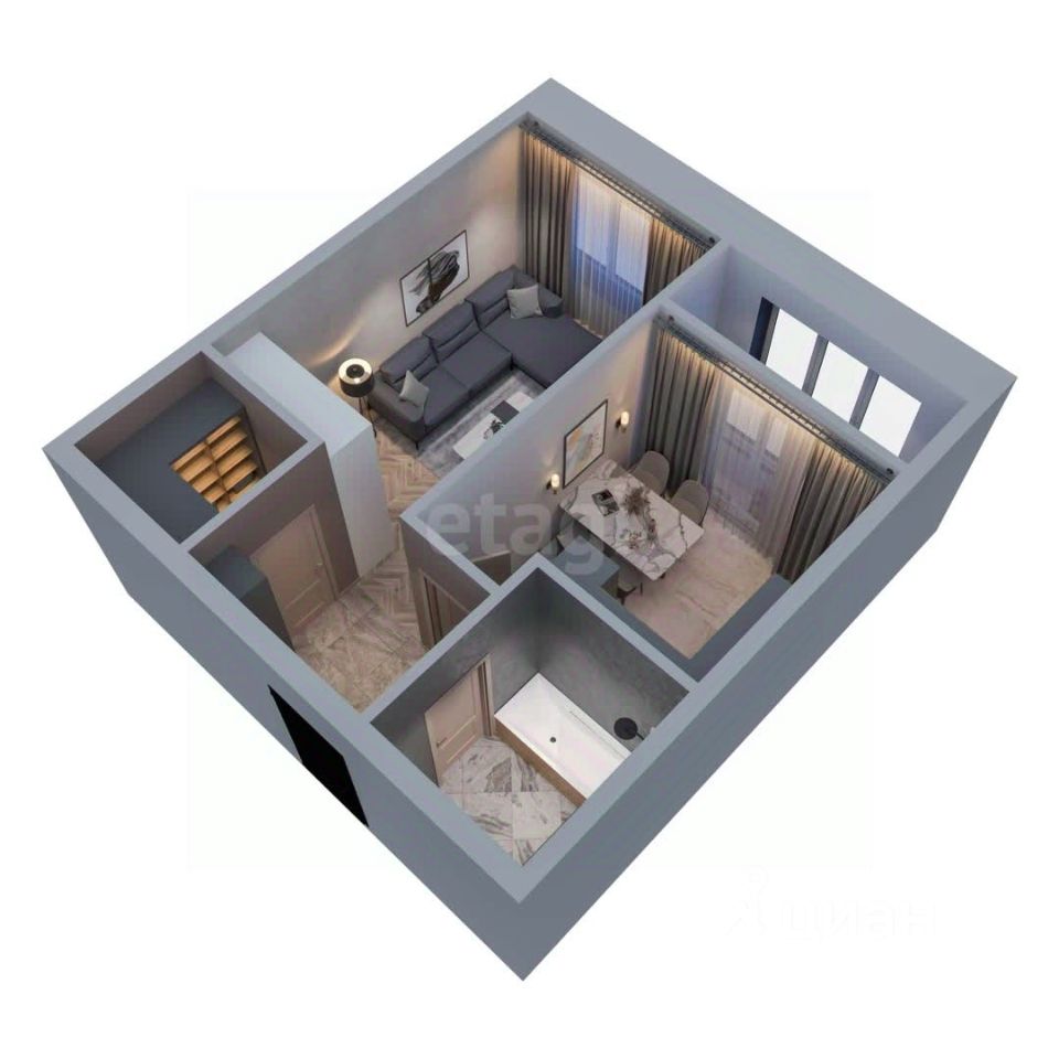 Планировка практична: все комнаты изолированы, предусмотрена отдельная гардеробная для организации хранения.