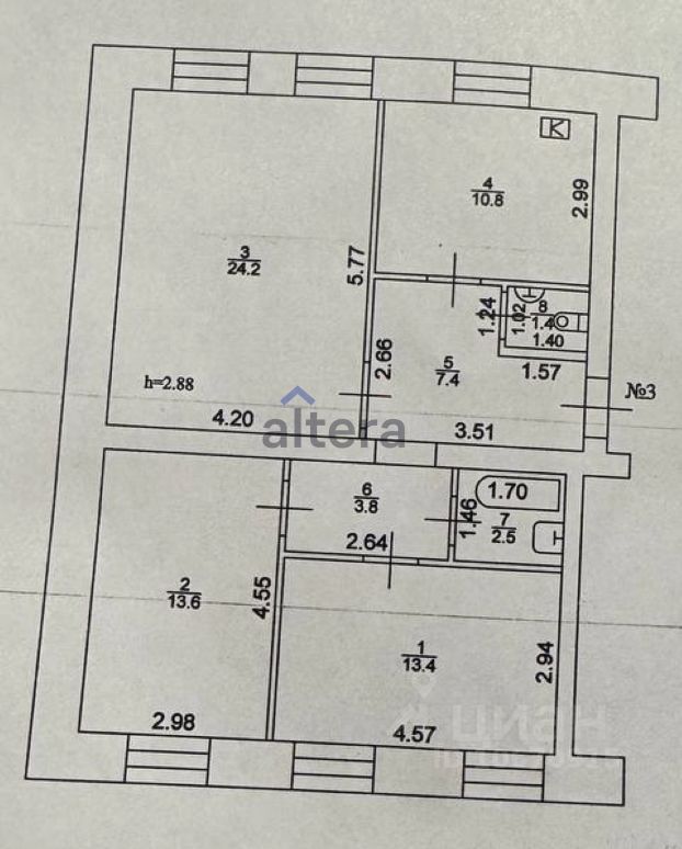 высота потолков 2.88м - квартира ощущается значительно просторнее и светлее