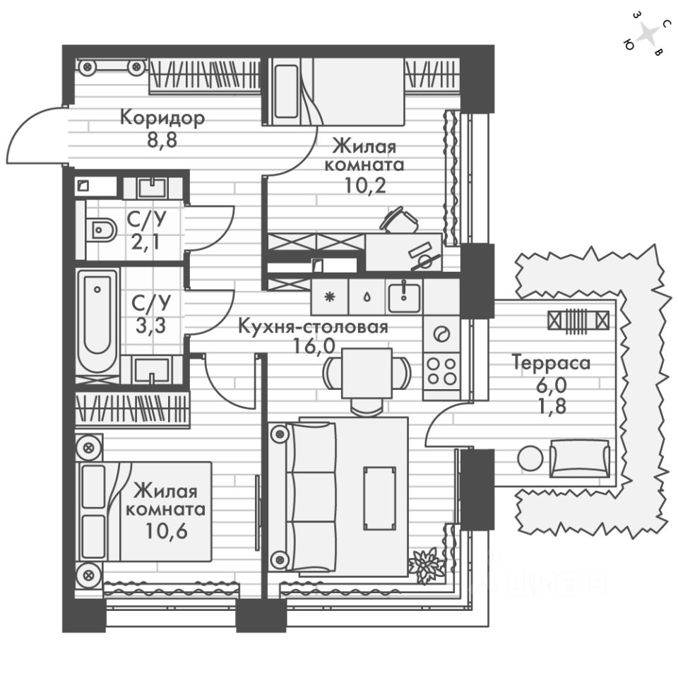 Продаётся 2-к квартира номер 2 общей площадью 53.1 кв.м. на 1-м этаже 7 этажного здания. Чистовая отделка. Цена с учётом скидки.