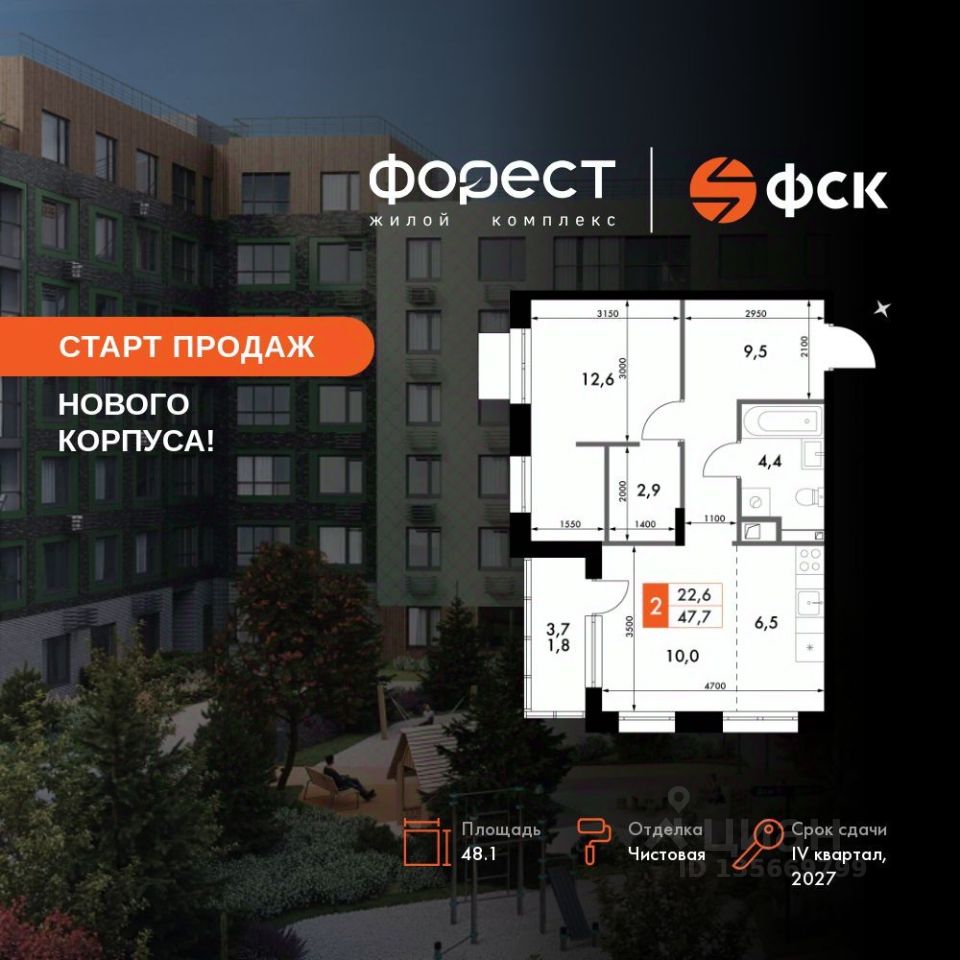 Продаётся 2-к квартира номер 16 общей площадью 48.1 кв.м. на 3-м этаже 7 этажного здания. Чистовая отделка. Цена с учётом скидки.
