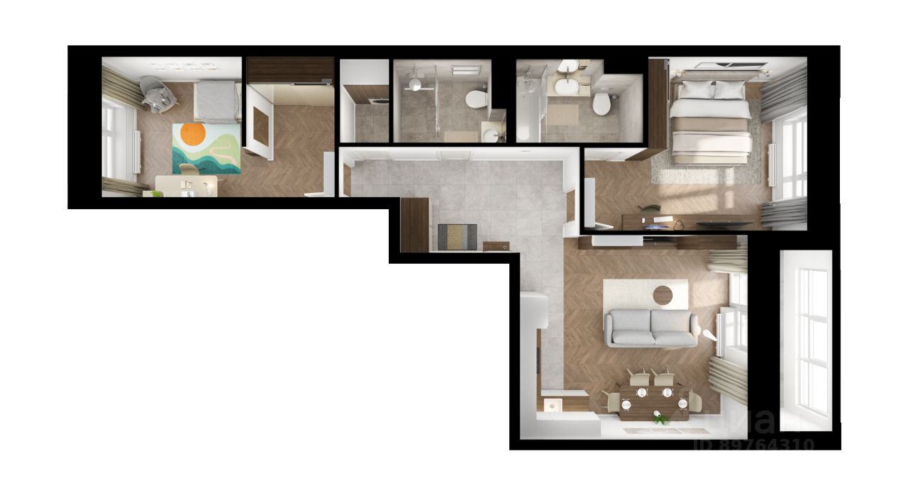 Продаётся 2-комн. квартира площадью 69,5 кв.м на 3 этаже 7 этажного дома (Корпус 1.2, Секция 6) проекта ПИК Сиберово. Светлый просторный подъезд на уровне земли, функциональная планировка, большие окна, предчистовая отделка.