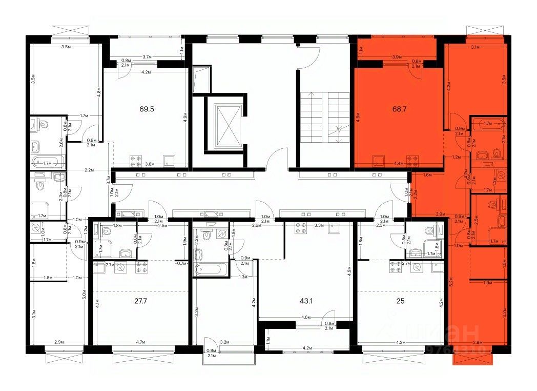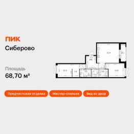 Продаётся 2-комн. квартира площадью 68,7 кв.м на 3 этаже 7 этажного дома (Корпус 1.2, Секция 6) проекта ПИК Сиберово. Светлый просторный подъезд на уровне земли, функциональная планировка, большие окна, предчистовая отделка.