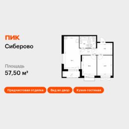 Продаётся 2-комн. квартира площадью 57,5 кв.м на 8 этаже 11 этажного дома (Корпус 1.1, Секция 4) проекта ПИК Сиберово. Светлый просторный подъезд на уровне земли, функциональная планировка, большие окна, предчистовая отделка.