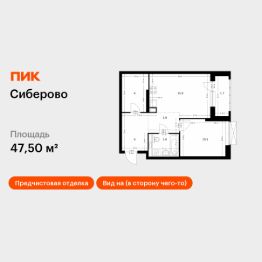 Продаётся 1-комн. квартира площадью 47,5 кв.м на 4 этаже 26 этажного дома (Корпус 1.1, Секция 3) проекта ПИК Сиберово. Светлый просторный подъезд на уровне земли, функциональная планировка, большие окна, предчистовая отделка.