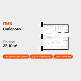 Продаётся 1-комн. квартира площадью 35,1 кв.м на 4 этаже 16 этажного дома (Корпус 3, Секция 4) проекта ПИК Сиберово. Светлый просторный подъезд на уровне земли, функциональная планировка, большие окна, предчистовая отделка.