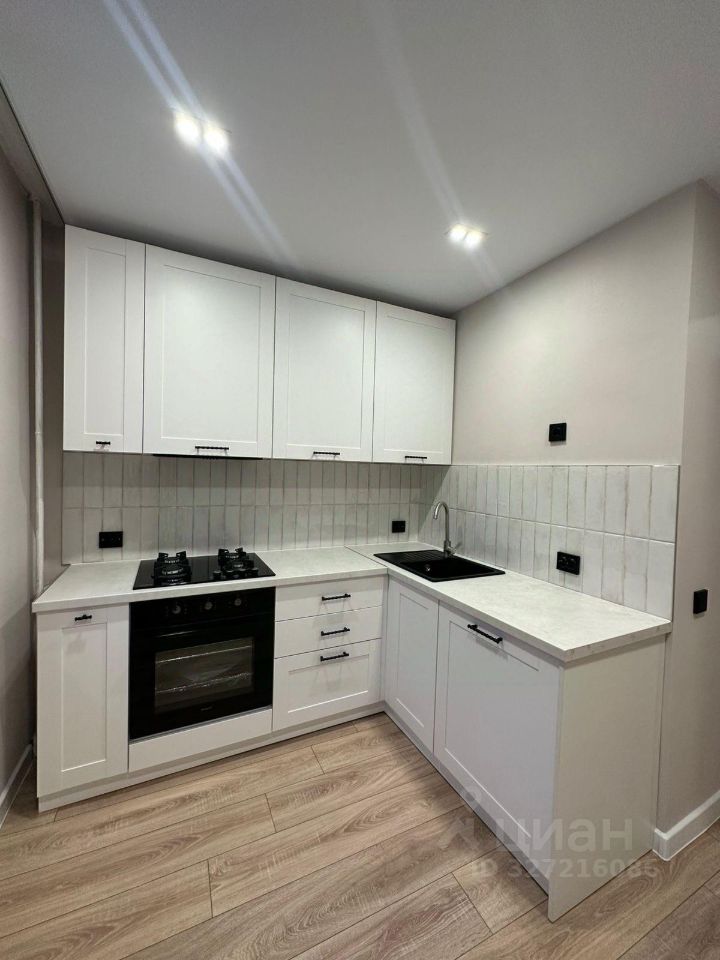 Каждый сантиметр пространства продуман с максимальной практичностью, полностью укомплектована всей необходимой техникой (духовой шкаф, варочная поверхность, встроенная вытяжка, стиральная машина).