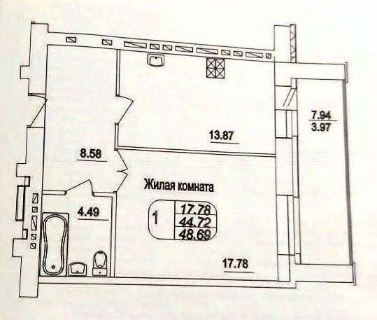 Общая площадь: 48,7 кв.м.