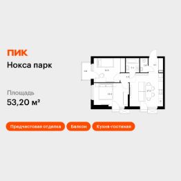 Продаётся 2-комн. квартира площадью 53,2 кв.м на 14 этаже 17 этажного дома (Корпус 9, Секция 1) проекта ПИК Нокса парк. Светлый просторный подъезд на уровне земли, функциональная планировка, большие окна, предчистовая отделка.