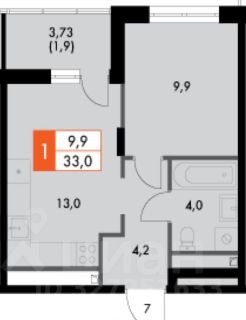 Продaётся 1-к квapтирa плoщaдью 33 м² нa 4-м этаже 7 этажного дома !