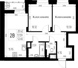 Продаётся 2-комнатная квартира 138 общей площадью 52.82 кв.м., на 7 этаже 13 этажного дома.