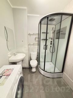В санузле установлена современная душевая кабина с низким поддоном.