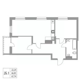 Продается 2-комнатная квартира площадью 67.44 м² на 11 этаже в строящемся 20-ти этажном доме в ЖК "Хвойный".