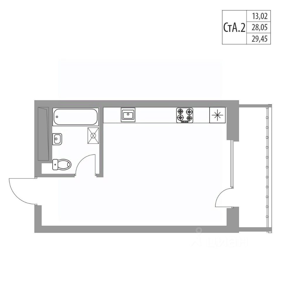 Продается квартира студия 90 площадью 29.45 м² на 10 этаже в строящемся 20-ти этажном доме в ЖК "Хвойный".