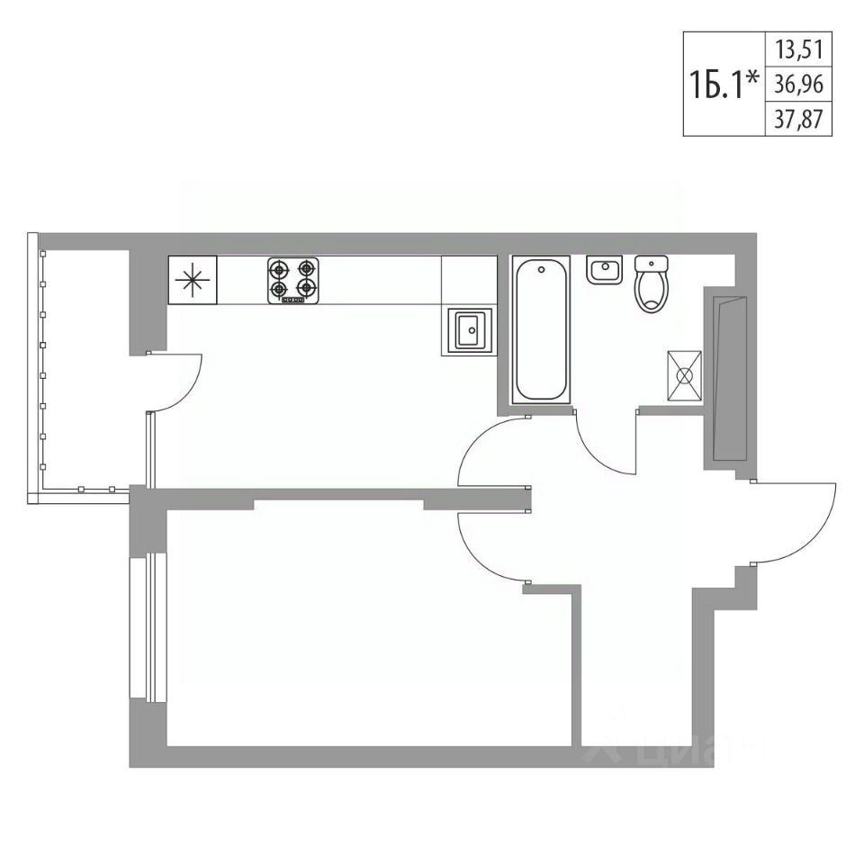 Продается 1-комнатная квартира площадью 37.79 м² на 4 этаже в строящемся 20-ти этажном доме в ЖК "Хвойный".