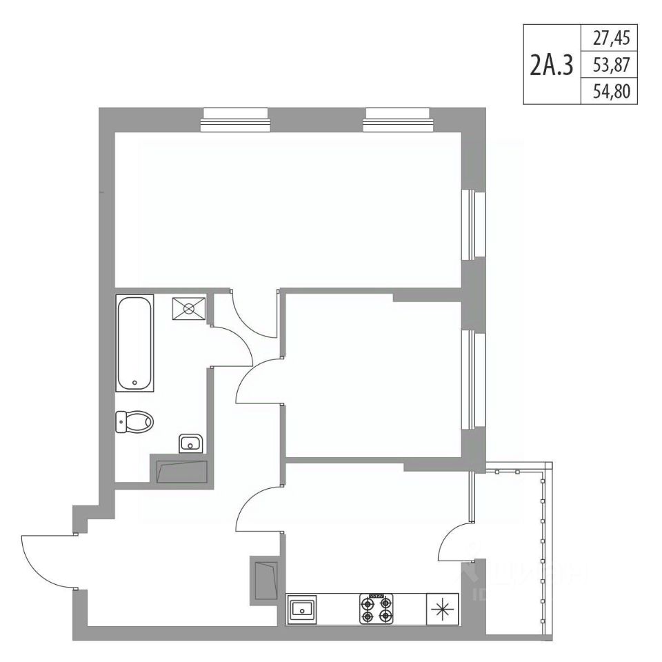 Продается 2-комнатная квартира 189 площадью 54.80 м² на 20 этаже в строящемся 20-ти этажном доме в ЖК "Хвойный".