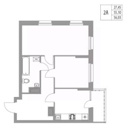 Продается 1-комнатная квартира площадью 56.91 м² на 4 этаже в строящемся 20-ти этажном доме в ЖК "Хвойный".