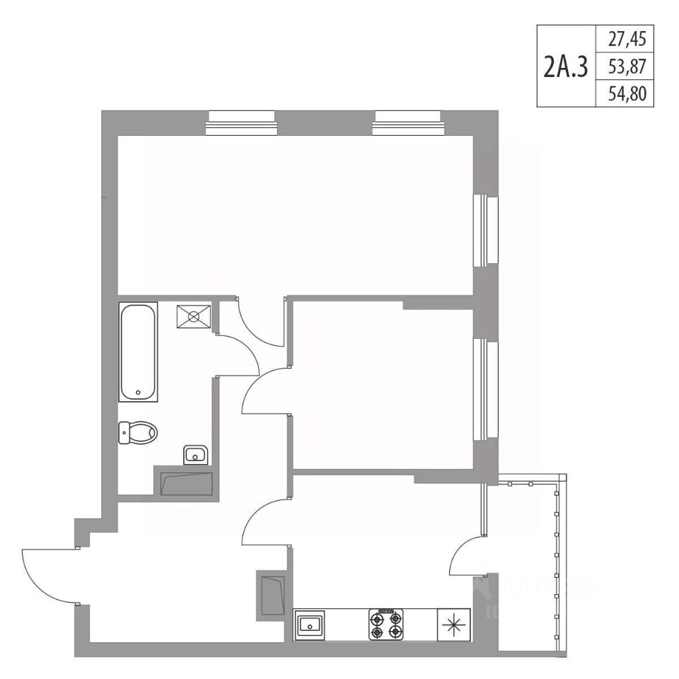 Продается 2-комнатная квартира площадью 55.31 м² на 3 этаже в строящемся 20-ти этажном доме в ЖК "Хвойный".