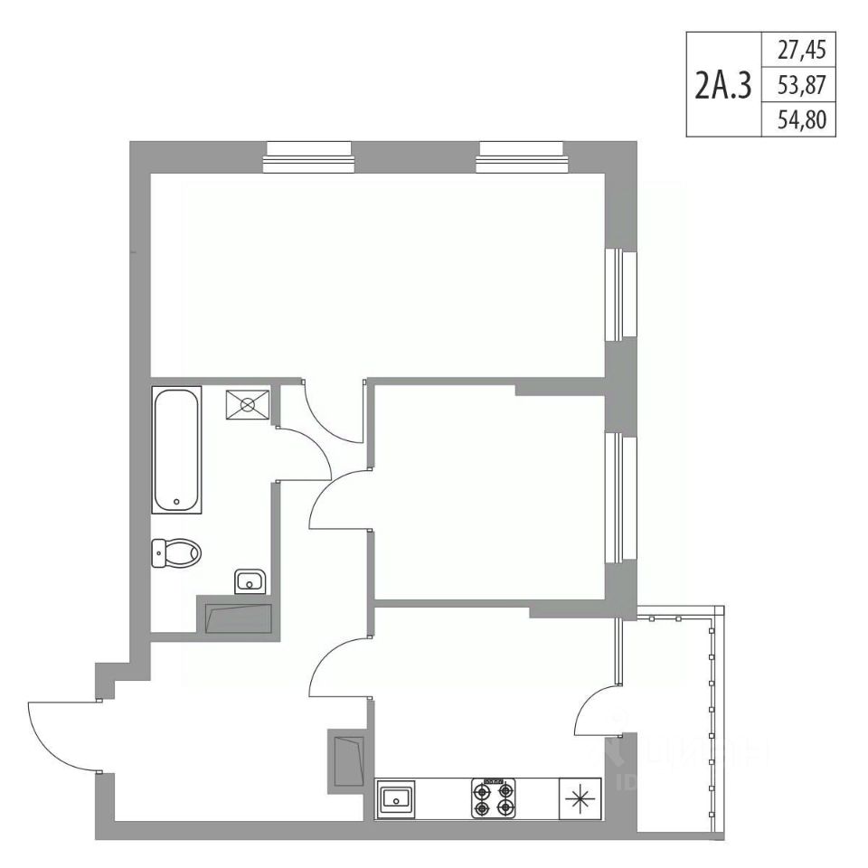 Продается 2-комнатная квартира площадью 54.80 м² на 11 этаже в строящемся 20-ти этажном доме в ЖК "Хвойный".
