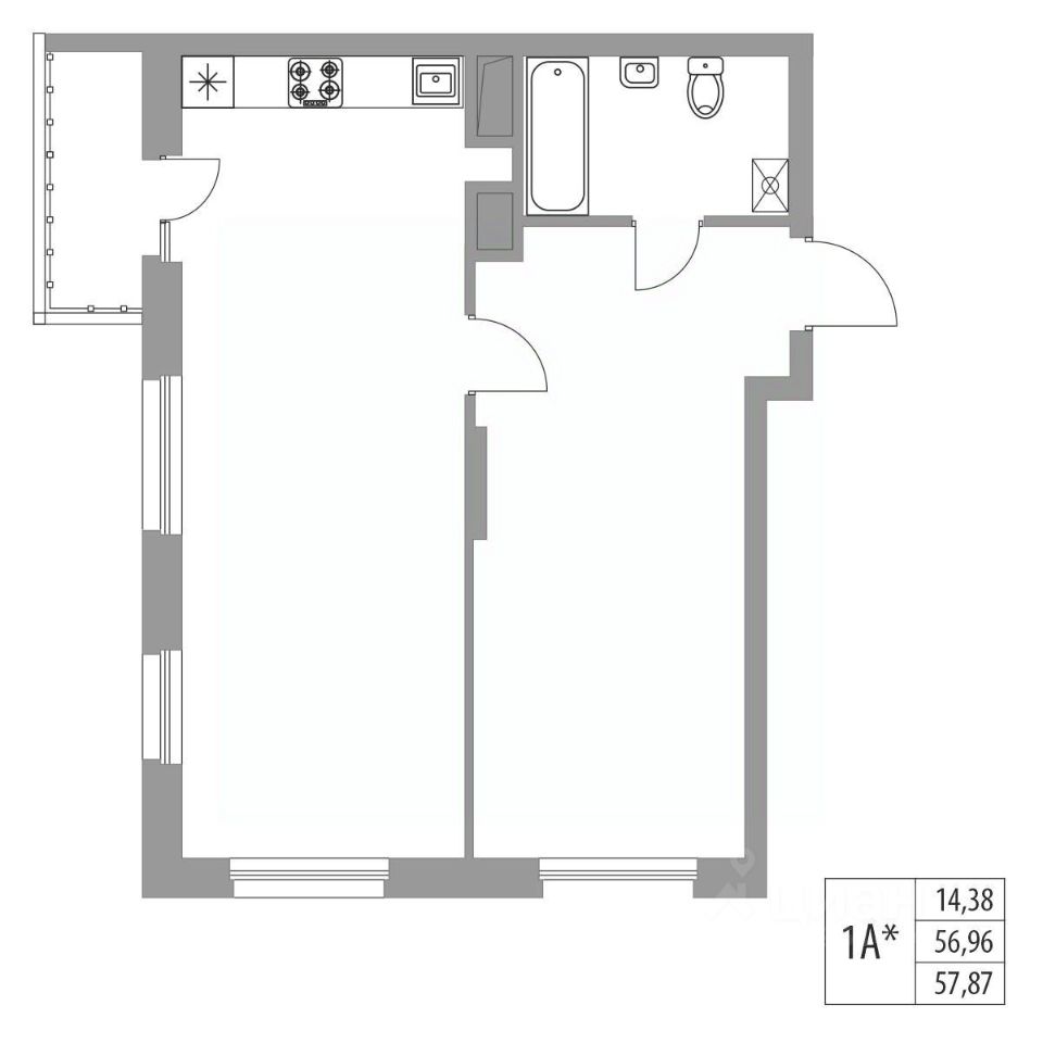Продается 1-комнатная квартира площадью 57.87 м² на 1 этаже в строящемся 20-ти этажном доме в ЖК "Хвойный".