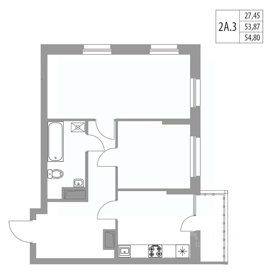 Продается 2-комнатная квартира площадью 55.16 м² на 4 этаже в строящемся 20-ти этажном доме в ЖК "Хвойный".