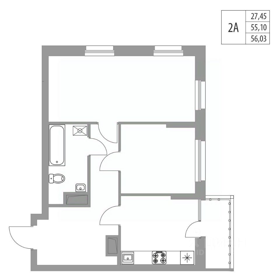 Продается 1-комнатная квартира площадью 56.93 м² на 4 этаже в строящемся 20-ти этажном доме в ЖК "Хвойный".