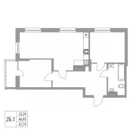 Продается 2-комнатная квартира 8 площадью 68.52 м² на 1 этаже в строящемся 20-ти этажном доме в ЖК "Хвойный".