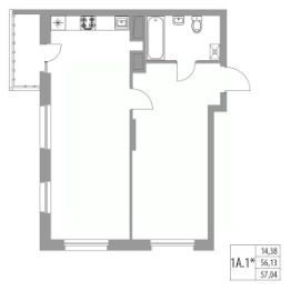 Продается 1-комнатная квартира площадью 57.04 м² на 3 этаже в строящемся 20-ти этажном доме в ЖК "Хвойный".