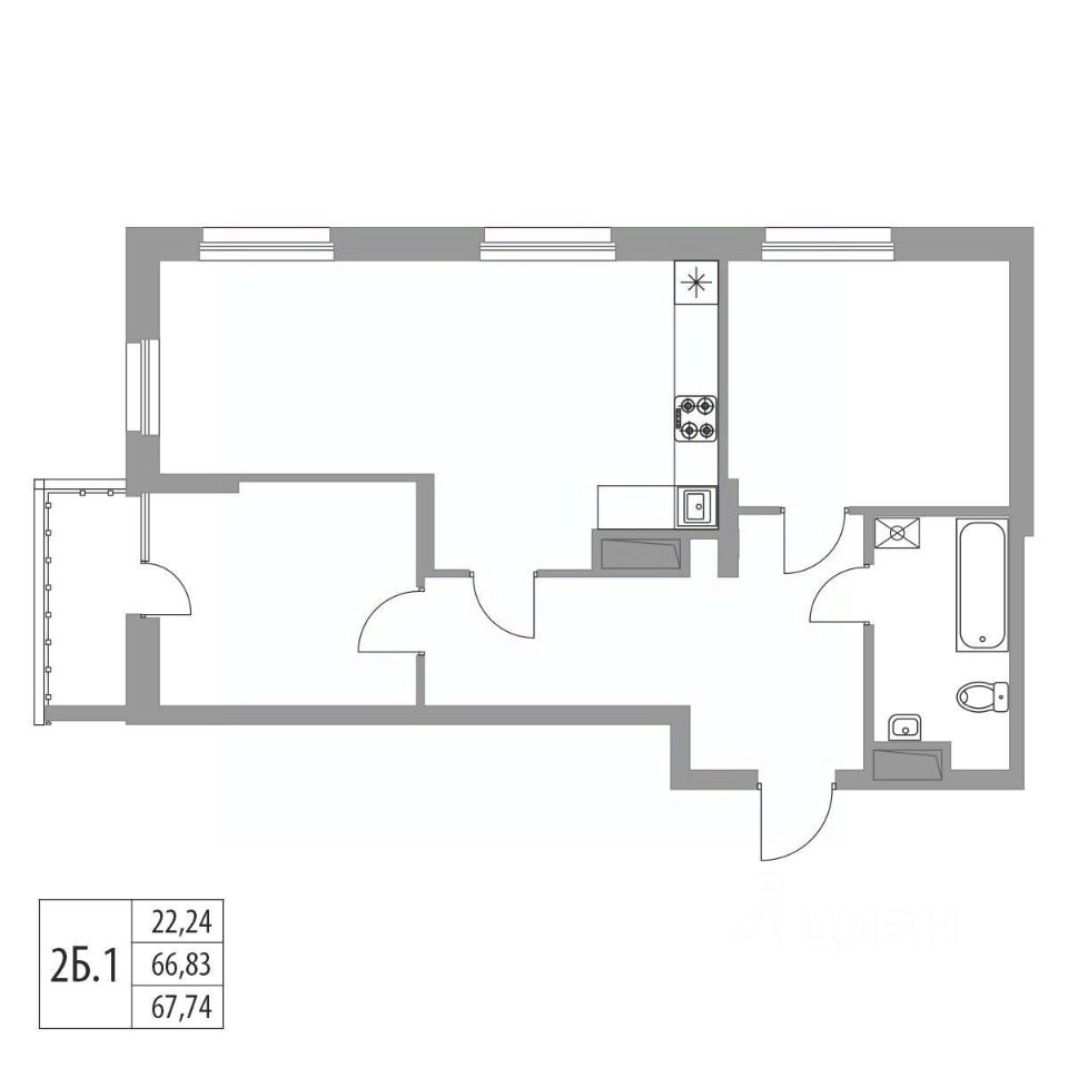 Продается 2-комнатная квартира площадью 67.74 м² на 3 этаже в строящемся 20-ти этажном доме в ЖК "Хвойный".