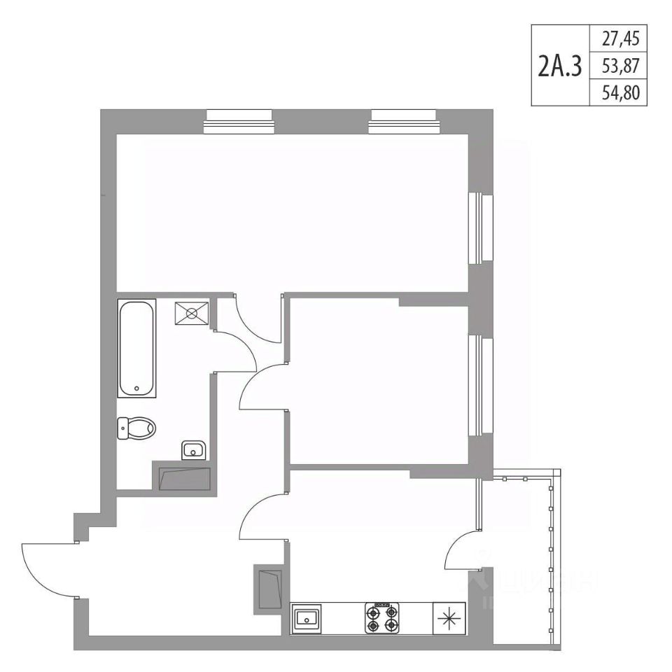 Продается 2-комнатная квартира площадью 55.31 м² на 2 этаже в строящемся 20-ти этажном доме в ЖК "Хвойный".