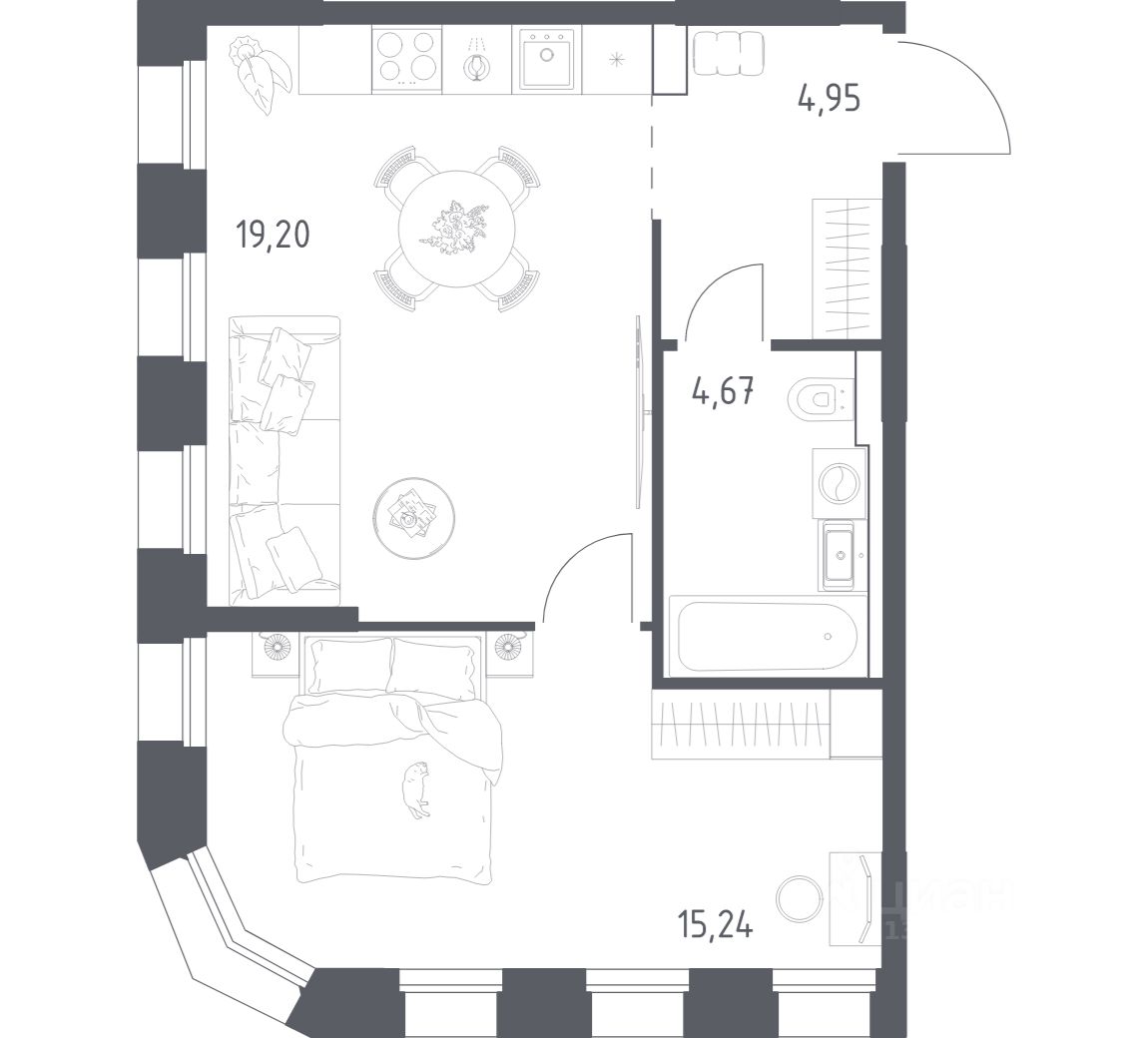 Строим кварталы для жизни с заботой о будущем. Предлагается 1-комнатная квартира комфорт-класса площадью 44.06 кв.м в корпусе 1КВ на 18-м этаже, в жилом комплексе "Зилант Премьер".