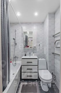 Санузел выложен керамогранитом.