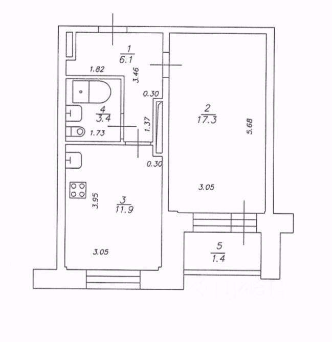 17,3 м²