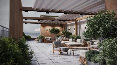 Эксплуатируемое пространство (SKY LOUNGE) на верхнем этаже с всесезонной лаунж-зоной и зимним садом. Это приятное дополнение к приобретенной недвижимости - доступное только для резидентов данного ЖК. Завораживающие виды и красота природы круглый год.