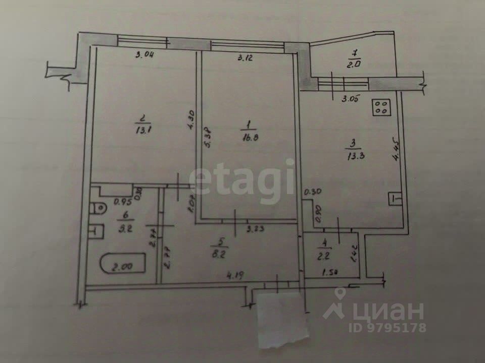 В квартире функциональная планировка - вместительная кухня (13,3кв.м), изолированные 2 комнаты правильной прямоугольной формы (16,8кв.м и 13,1кв.м) для комфортного размещения нескольких членов семьи; совмещенный санузел, в кафеле. Cанузел оборудован стильной душевой кабиной, что добавляет удобства в повседневную жизнь. В коридоре установлен вместительный шкаф-купе, который поможет вам организовать пространство и сохранить порядок.