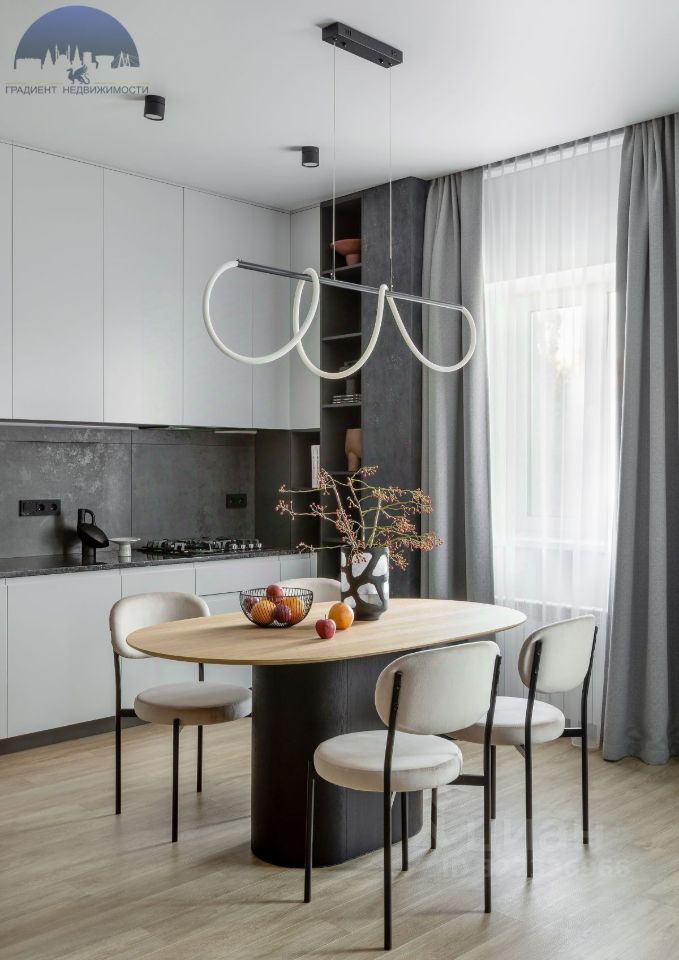 Просторная кухня-гостиная с уютной зоной отдыха и полностью оборудованной кухней-столовой.