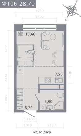 Студия, 28,7 м²