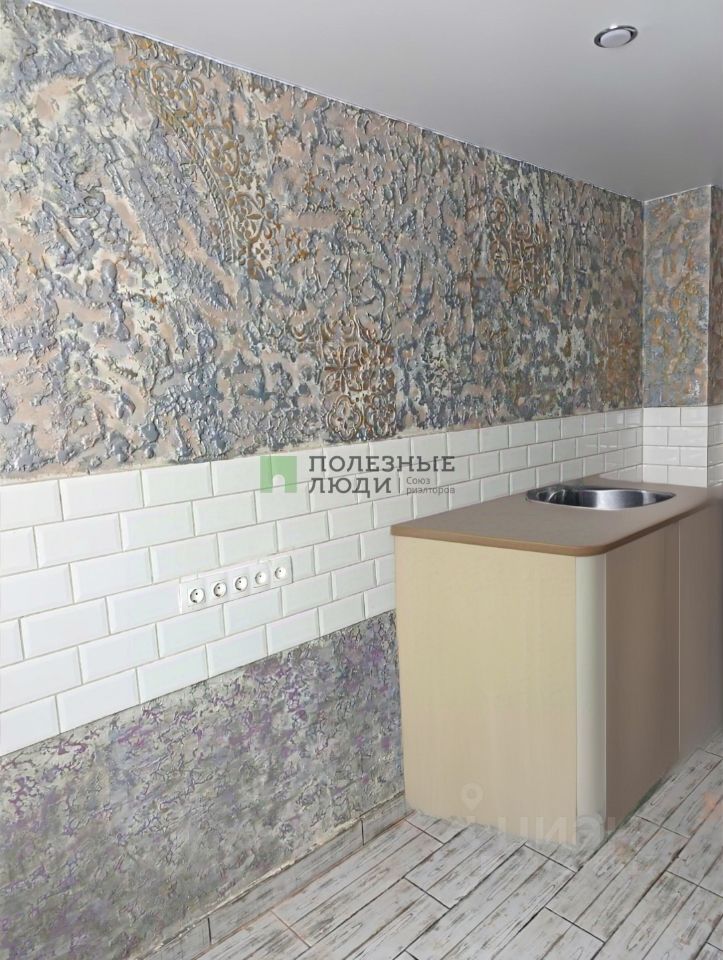 В квартире выполнен частичный ремонт: натянуты потолки (кроме коридора), стены на кухне оформлены декоративной штукатуркой, пол покрыт плиткой.