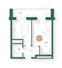 Продуманное пространство: Площадь 41,95 кв.м. Отличный вариант для одного или семейной пары.