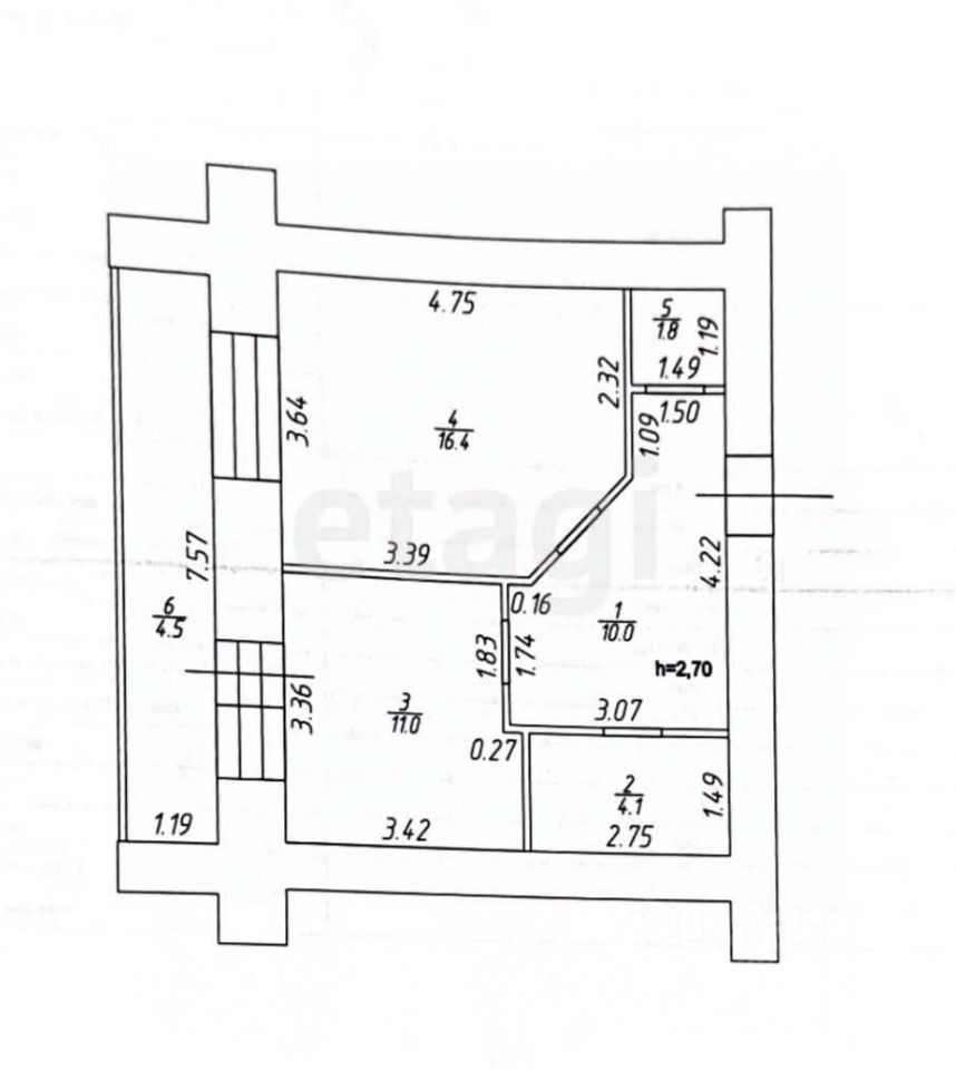 • комната 16,4кв.м, кухня 11кв.м, санузел 4,1кв.м, прихожая 9кв.м, гардеробная зона 2,8кв.м;
