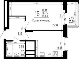 Продается 1комнатная квартира 95 общей площадью: 35.63 кв.м. на 15 этаже в 1 секции 23 этажного дома.