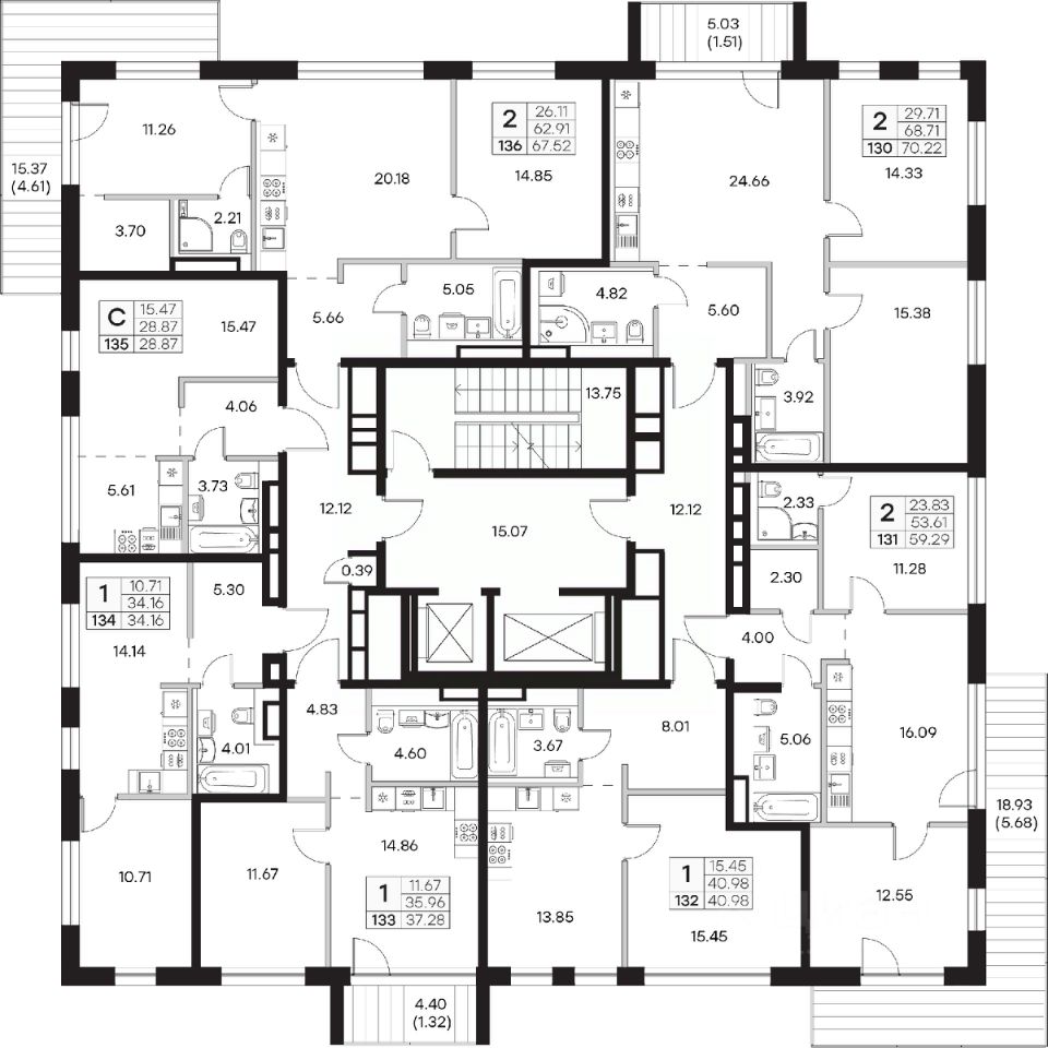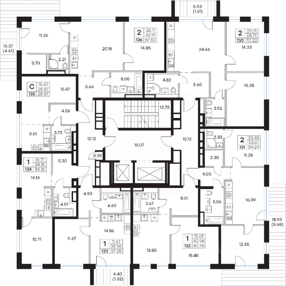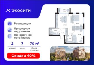 Продается 2-комн. квартира на 7-м этаже в строящемся проекте Экосити. Общая площадь лота составляет 70,22 кв. м, из которых 29,71 кв. м отведено под жилую и 24,66 кв. м под кухонную зону. Номер квартиры - 130
