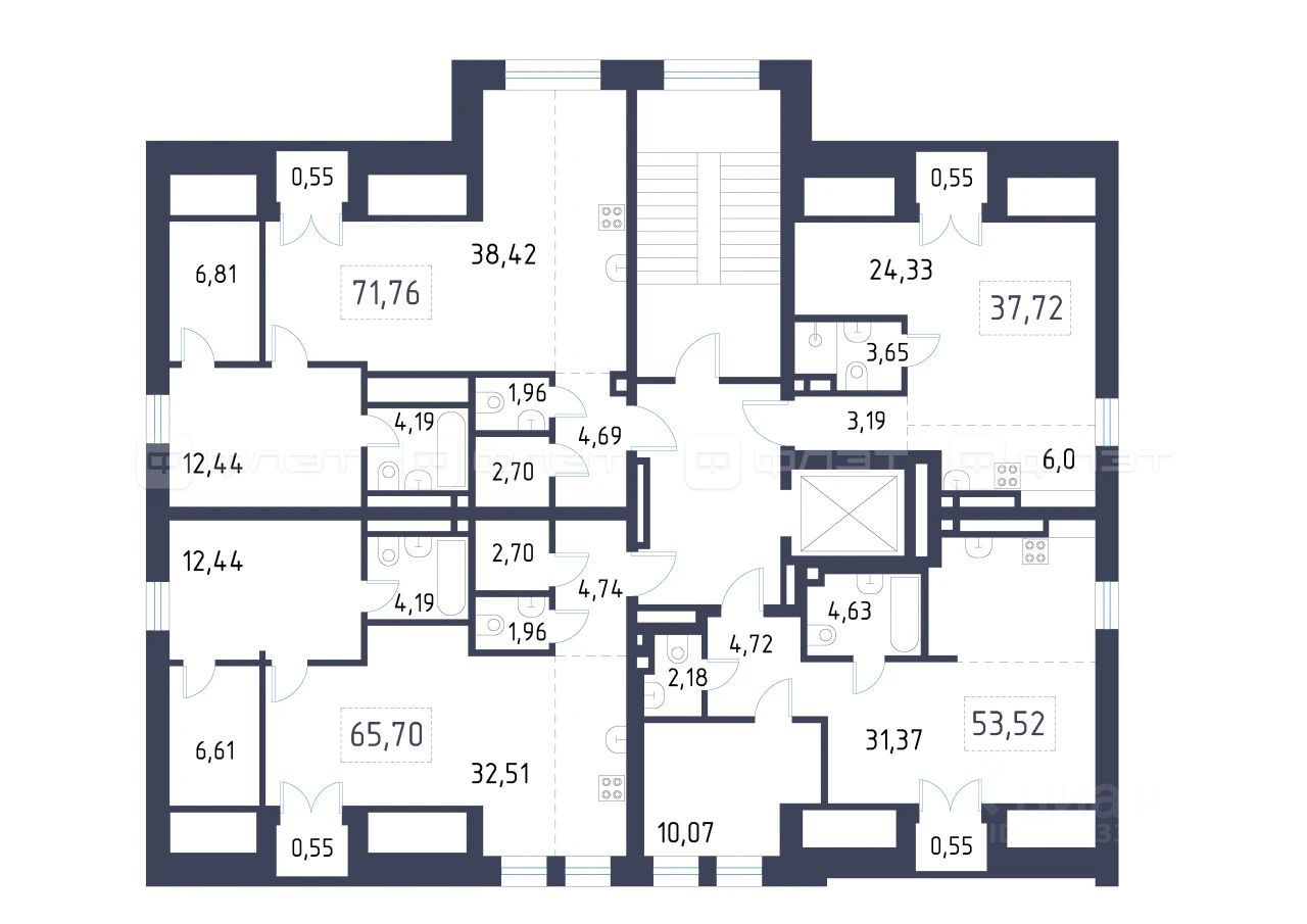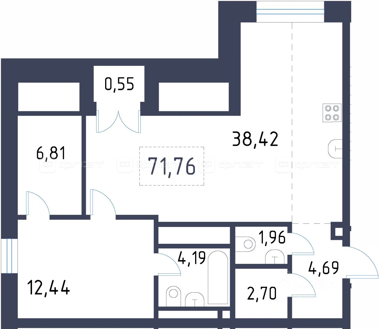 1-комнатная квартира 71.76 м² на 4 этаже в строящемся клубном доме премиального-класса "Уналты".