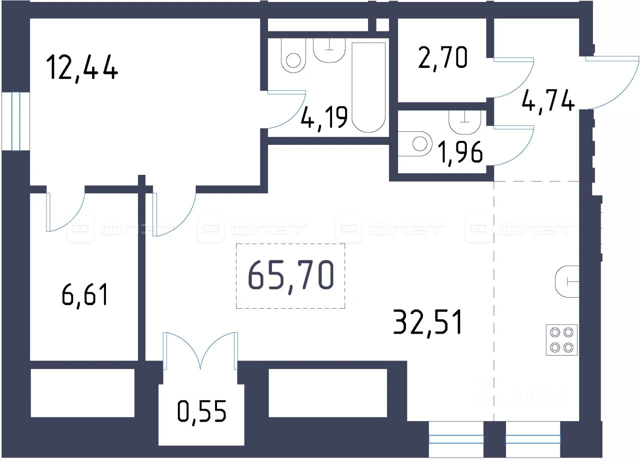 1-комнатная квартира 65.7 м² на 4 этаже в строящемся клубном доме премиального-класса "Уналты".
